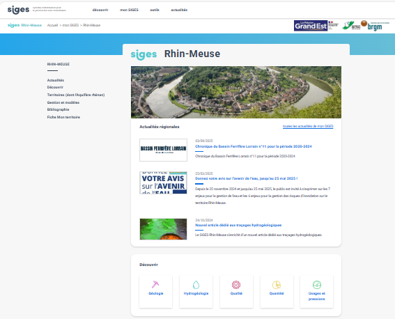 Le SIGES Rhin-Meuse (Système d'Information pour la Gestion des Eaux Souterraines) met à jour son portail. Ce nouveau site propose une ergonomie modernisée et une navigation simplifiée : l’ancien contenu a été intégralement transféré et réorganisé dans des rubriques thématiques (géologie, hydrogéologie, qualité, quantité, usages et pressions).